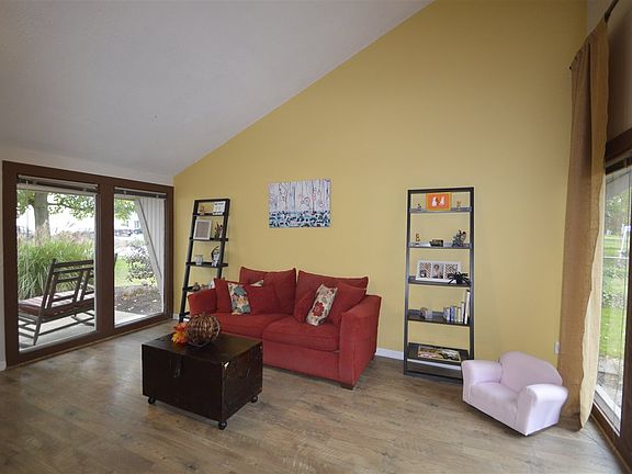 Move-in ready contemporary home with open floor plan. Master suite on main level with walk-thru closet, full bath and fun sliding barn door. Spiral staircase to 2nd and 3rd bedrooms plus full bath upstairs. Vaulted ceilings on main level with large windows overlooking back yard. Floor-to-ceiling brick fireplace. Completely remodeled open concept kitchen with new cabinets, counters, breakfast bar, and unique stone backsplash. Both bathrooms updated, and newer flooring throughout most of the home. Nice deck and patio combo for outdoor entertaining. Association pool, golf, tennis & club house for an additional membership fee.