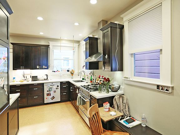 Building in on Capp Street between Mission and South Van Ness. It has bicycle parking and a stack of shelving in the garage for storage. Shared yard has lawn furniture, barbecue, deck and grass. A parking spot is available in the garage for an additional fee. It's half a block to shopping and dining on Mission Street. Walk Score is 100, Transit Score is 85. 24th Street underground MUNI, BART and bus lines 14, 48 and 49 are half a block away, and lines 12 and 27 are within easy walking distance.