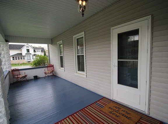 Located on a corner double lot, charming curb appeal, white wrought iron fence surrounds the property, play set patio. Two covered porches. Foyer leads you into the living room, large eat in kitchen with storage bench built in, all appliances stay. Convenient first floor laundry area, office or play area. Master bedroom with adjacent room, perfect for nursery, office or dressing area, full bath. Large two car garage. It's easy to picture yourself sitting on your porch enjoying the day.