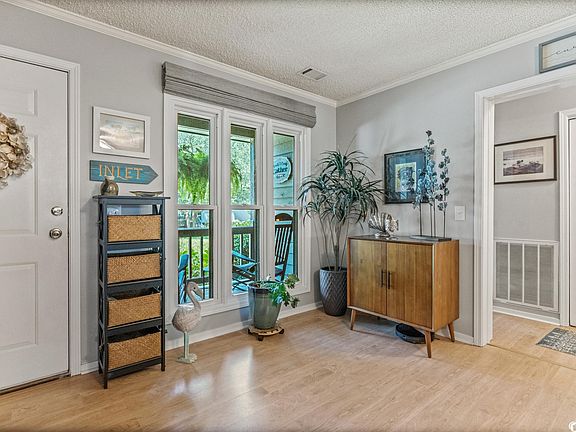 We have received multiple offers on this property. Please submit your highest and best by 5pm on 7/18. Let the sea set you free! Come ride your golf cart to Garden City from this lovely beach cottage located in the highly desirable community of Jamestowne Colony in Murrells Inlet. As you arrive, you will notice that this unique single-level home has a Southern-style front porch. This is the perfect place to relax and enjoy the ocean breeze! This home has a split floor plan with a big living room and an open kitchen/dining room area with a large bar for entertaining. The kitchen has an induction range along with high-end Quartz countertops, a stylish glass tile backsplash, and a pantry. All of the appliances were replaced with stainless steel in 2021 and a deep composite sink was added with a modern faucet. The owner's suite has a walk-in closet and private access to the screened-in porch along with an en-suite bath, which has a nice shower and a couple of bench seats with a linen closet. The entire interior of this beautiful home has been painted, both of the toilets have been replaced, and upscale tiles were added in the guest bath. This move-in-ready home has been very well-maintained, and the owner is even offering a home warranty for extra peace of mind. The Murphy bed, window treatments, and washer/dryer will convey. The screened-in porch is the ideal spot to sit back and enjoy your favorite drink, and the huge composite deck is a great place to grill out with your friends. The backyard has been completely fenced-in and a paver patio was added. This is a nice area to read a book underneath the palm tree. There's an outdoor shower along with a garden and many exotic flowers. You can walk directly through the back gate to the clubhouse and saltwater pool. It feels like you have your own pool, but you don't have to maintain it! So, you can take a dip and lounge around while the hoa maintains it for you! The side door leads out to a tranquil setting with lots of wonderful trees. The carport has a detached storage room for all your beach necessities. There is a long driveway with an additional covered area for your golf cart. Gutters have been added and the irrigation system was updated in 2021. It has three zones in the front and back with a rain gauge. There are stairs that lead up to a floored attic, which provides a good amount of extra space to store decorations and such. Motorcycles are allowed and you can keep a boat on your property for up to seven days. This would be the perfect second home, primary residence, or investment property. Jamestowne Colony is conveniently located close to everything that the Grand Strand has to offer! The World Famous Marshwalk is only a few minutes away along with the Garden City Pier and Surfside Beach. There are many delicious restaurants, top-notch golf courses, and plenty of unique shops. This community is located in the award-winning Saint James school district. This is truly a must-see and you don't want to miss out! Schedule your showing today and don't forget to check out the virtual tour! Square footage is approximate and not guaranteed. Buyer is responsible for verification.