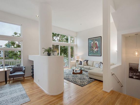 LOCATED ON THE LAGOON...this sun-filled Regatta townhome enjoys soaring ceilings, gas fireplace, tall windows that allow the rooms to share light and space. This residence features the original Cambrian floorplan, which allows the option of an open den/office or a potential THIRD BEDROOM. Walls of windows and sliding doors that open to a deck, provide the perfect vantage point for enjoying the water views. You also have access to the grounds and a meandering walkway that wanders through the Regatta grounds. EXTRAS: Central A/C, Roll up Shades (water facing are automated), hardwood floor, designer lights, Grohe water fixtures (most) and MORE! Great Location. Close to shopping (Nob Hill grocery is just 1.6 miles), restaurants, coffee shops, world class employers (Oracle is just 2.4 miles), excellent schools (Sandpiper elementary is your neighborhood school), community library, and midway between San Francisco and Silicon Valley.