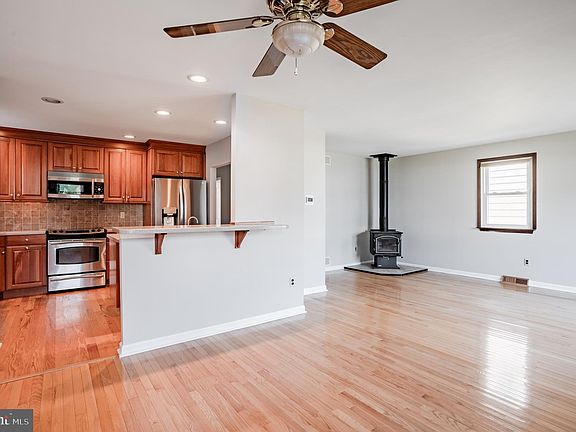 Fantastic rancher in Ardsley is ready and waiting for the next owner. Hardwood floors throughout. Outside House and indoor living area freshly painted. Wonderful updated kitchen featuring solid surface counter tops, loads of cabinets, corner sink and additional prep sink in the island with bar seating. Open Living/ Dining Area with large window flooding the home with light. Living Room with Wood Stove. Main Bedroom with double closet- (currently has washer & dryer in it, can easily be moved downstairs). 2 additional good size bedrooms. Full basement with outside exit is a great space for expansion. Fenced in rear yard. Full side deck.