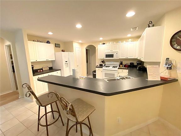 Beautiful 4 Bedroom 3 Bath home located in the desirable Tuscan Ridge community. This tastefully decorated move-in ready home is fully furnished for you and your guests. The master bedroom with ensuite includes double vanities, shower and large tub for your convenience. This home boasts a dining room and eat-in kitchen which provides plenty of room for entertaining. The family room opens up to a north-facing covered lanai with covered seating, a large pool and spa for you to enjoy the lovely Florida weather. The garage is currently being used as a games room for all your entertainment needs. Tuscan Ridge is conveniently located to all of Central Florida's main attractions! Come see why this home is perfect for your next vacation home, short-term rental property or permanent residence.