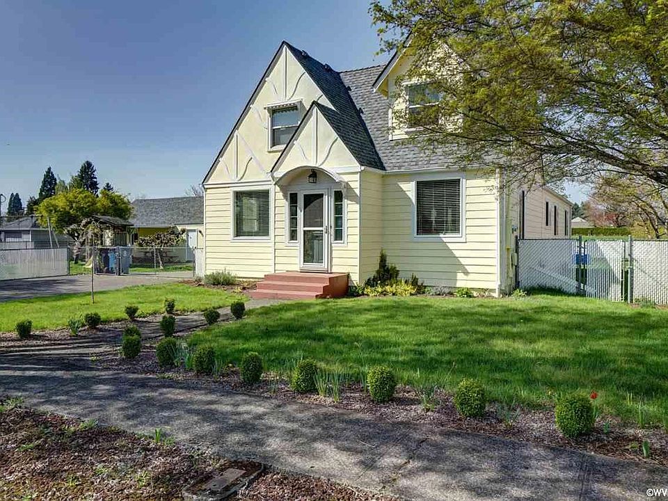 A timeless landmark. Built in 1936, this traditional English style home certainly displays its personality. With almost a half acre, there is plenty of room for toys, kids and pets. The extra lg yard is fully fenced w/ a pasture view. Shop/garage is wired for 220 and plumbed for air & vacuum system. This very loved home has been almost completely updated with majority in 2017. Basement w/ outside entrance. Beautiful high ceilings that match the roofline. Come call this little bit of Stayton history "home".
