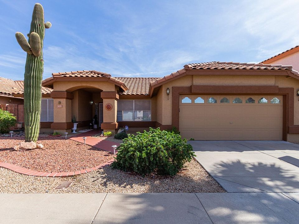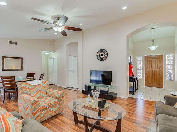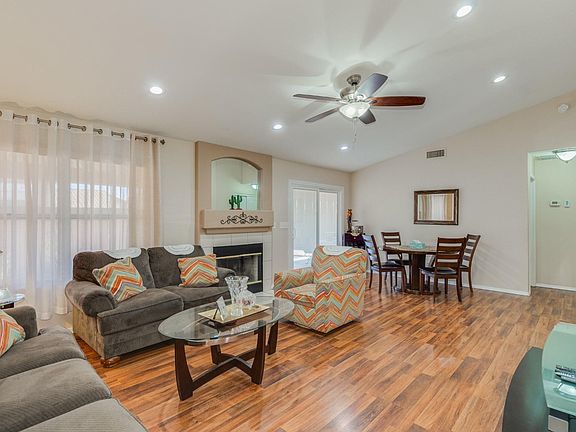 Nice clean curb appeal for this north phoenix home. The tiled entry leads to formal living & dining with wood floors and vaulted ceilings and a tiled front fireplace. The eat-in kitchen has crisp white cabinets, granite counters, black/SS appliances. Spacious master leads to en-suite that boasts a double vanity, shower/tub and walk-in closet. The garage has built-in cabinets and epoxy floors. Close to the loop 101. Call for a showing today!