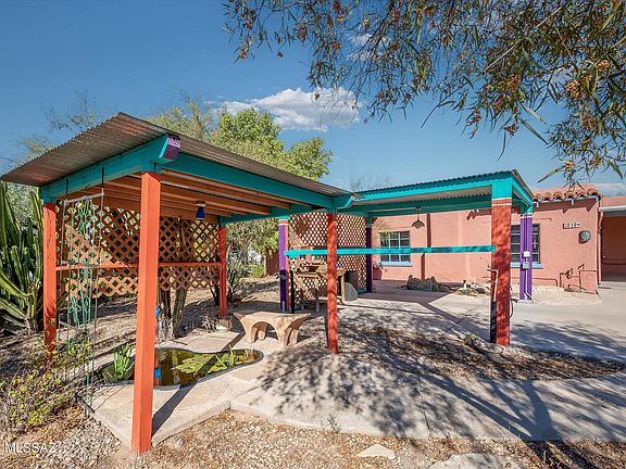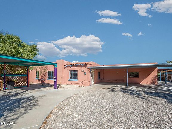 Nestled in the heart of midtown Tucson, this 1948 Santa Fe Style Home offers a unique blend of Tucson charm, privacy and convenience. Featuring a split three bedroom floorplan, two bathrooms, a sparkling pool, a cozy fireplace, a spacious laundry room/utility room, and a large lot perfect for a guest house or lush garden. The primary suite also features a private entrance, offering ideal guest quarters. The exterior of the home also has a small pond, three car carport, and space for RV Parking. Let your imagination run wild with landscaping and outdoor living possibilities. Its unique blend of traditional style, fantastic location, potential for expansion, and modern amenities create a remarkable property that is both a comfortable sanctuary and a canvas for your future.
