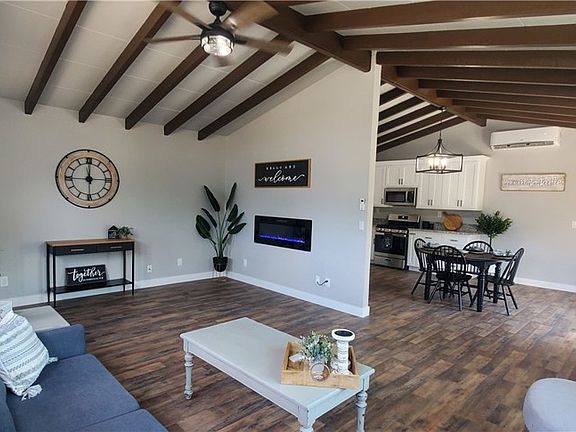 COMPLETELY REMODELED FROM TOP TO BOTTOM! This home features an open floor plan, custom kitchen with wood cabinets, granite counter tops, stainless steel appliances and French doors that leads to your patio area. Nice living area with high ceilings, wood beams, electric fireplace & tons of light. Spacious bedrooms, master is large enough for a king size bed, spa like master bath with double sinks, granite counters & tile walk-in shower. Home has soothing paint colors, new windows, new plumbing & electrical throughout entire home. Large enough backyard to entertain and relax but small enough for easy maintenance.