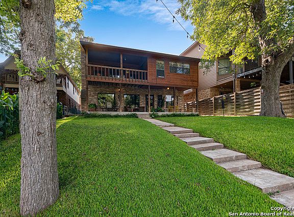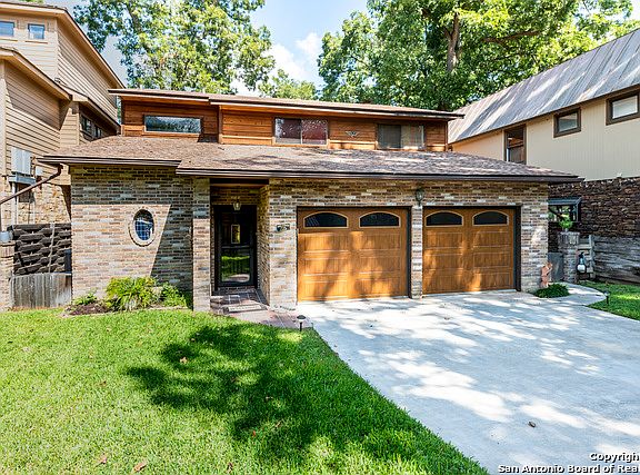 LIVE THE LAKE MCQUEENEY LIFESTYLE. Great location along the banks of the Guadalupe River. This 4 bedroom 2.5 bath home is the perfect spot for waterfront enjoyment and features two living areas, two dining areas, improved waterfront, and boathouse with deck. The owner's suite and bedroom 2 open to covered upstairs porch with tremendous view of the waterfront. Laundry chute from upstairs to laundry room. Home features a 2 car garage plus a detached 1 car garage/workshop with bathroom. A short boat ride up to the Lake Breeze Ski Lodge.