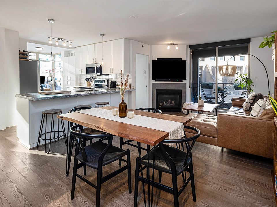 Built by BOSA, come see this beautifully fully renovated corner 2 bedroom, 2 bathroom home with panoramic views of city lights and the Vancouver Library! Appreciate the functional, open concept kitchen with full size stainless steel appliances and granite counters, leading into the spacious dining/living room with gas fireplace and balcony. The private principal suite boasts an oversized bedroom with a chic, updated ensuite. Ideal floorplan with separated bedrooms, bright den/office space, oversized windows, designer flooring and California Closet organizers. Located in the heart of Downtown excitement - steps to eateries, shopping, sports arenas, and tons of amenities/entertainment. Building amenities include fitness centre, sauna and full time caretaker.
