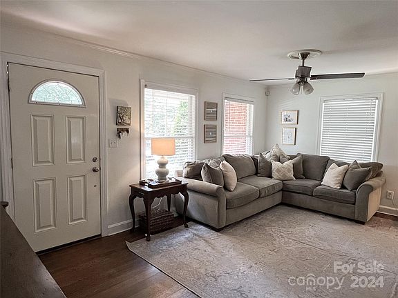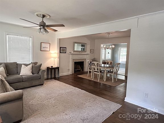 Location Location! Walk to all that SouthEnd, LoSo, Dilworth have to offer plus Light Rail access. Also, less than 10 minutes to Park Road Shopping/Montford Drive area. Brick Ranch with covered front porch & loads of charm located in fabulous Colonial Village / Sedgefield area! Lovely hardwood floors (original) throughout living spaces and all bedrooms. Fireplace with mantle in dining room. Crown molding in many rooms. Beautiful deep treed lot -- homeowners have spent many hours working to enhance & improve the yard/landscaping. Surrounded by many new builds thru-out the neighborhood, this lovingly maintained home is ready for the next owner's renovations and/or addition or new construction. Sunroom carpet replaced 6/2024, Lennox 17 Seer 2 Ton AC unit just installed 5/2024. Dishwasher replaced 2020. In 2022, Sellers had licensed electrician replace meter box, riser, main line, breaker box plus double grounded everything to protect from power surges. Dryer 2022. Property sold "AS IS".