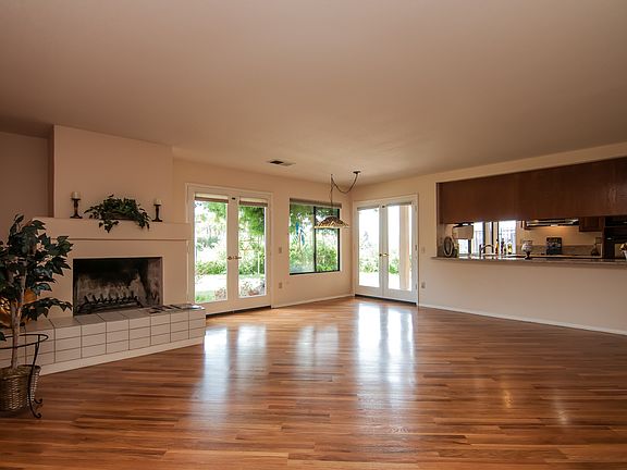 Rare single story in Sonata with PANORAMIC view! Home is located on quiet lane off of Inspiration Lane. Great floor plan with beautiful wood floors, 2 fireplaces, open kitchen to family room, indoor laundry and more. Huge flag lot, SOLAR heated pool/spa. Gorgeous garden for the outdoor enthusiast. Low HOA, Tennis courts, neighborhood parks. Sonata is 50% open space. NO Mello Roos. Walk to North County Fair shopping mall, Vineyard golf course and Kit Carson Park!