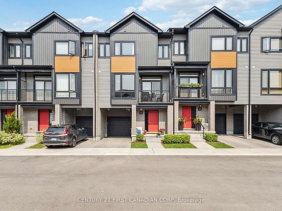 Welcome to Eden at Applewood! North London's sought-after Back-to-Back Townhome model. Modern, affordable, and sun-filled - West-facing three-level townhome with low condo fees and quick closing available.,This spacious 3-level, 1,750 sq. ft. condo features a single car garage with inside access. No Renos Needed: Enjoy modern upgrades including quartz countertops throughout, 2 full + 2 half bathrooms, and a large open-concept kitchen/living room on the 2nd floor. .This is a fantastic opportunity for first-time homeowners or a safe, convenient option for university students. Located close to all amenities YMCA, shopping, UWO, Masonville Mall, excellent schools, and beautiful trails. Please Note: The design of this stacked townhome emphasizes affordability and space efficiency, which may result in slightly smaller bedroom sizes. This is a common feature in todays market as builders aim to provide more budget-friendly homes for first-time buyers and investors, while maximizing shared living spaces and unit availability within a limited footprint .Condo fees include: Building Insurance, Building Maintenance, Common Elements, Decks, Doors, Ground Maintenance/Landscaping, Parking, Private Garbage Removal, Roof, Snow Removal, and Windows.