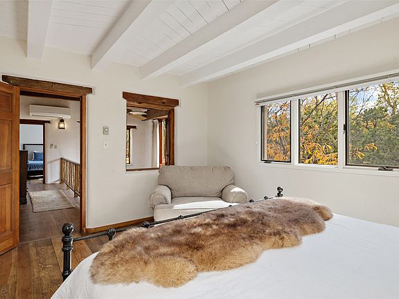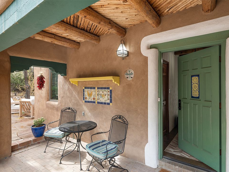 SIMPLY SURROUNDED BY NATURE! Fabulous in-town home completely enveloped by nature at every turn with banks of tall soaring glass windows that seamlessly blend the warm cozy inside spaces with the natural world. The "outdoor rooms" make the property feel twice as big while keeping a smaller, more manageable footprint for your nest. Find classic Santa Fe style with lots of cool architectural elements and details - a marvelous balance of grand space and comfort. The home offers approximately 2,535 SqFt. of living space, with 3 bedrooms, 2.5 bathrooms, and an office. The downstairs features brick flooring, while the upstairs has wood flooring, and the bathrooms have traditional Mexican Saltillo tiling. A stunning wall of windows flanks the living/entertaining room filling the space with natural light, while the wood beam ceilings add a touch of warmth and charm. The sitting room is a zen space with a kiva fireplace that invites you to unwind after enjoying the outdoor hot tub or a quiet meal at home. Flagstone patios surrounding the house are ideal for entertaining or relaxing in the mild climate of the high desert. 2 car garage. No HOA fees. This property is conveniently located in downtown Santa Fe, just minutes from the historic plaza and its multitude of attractions.