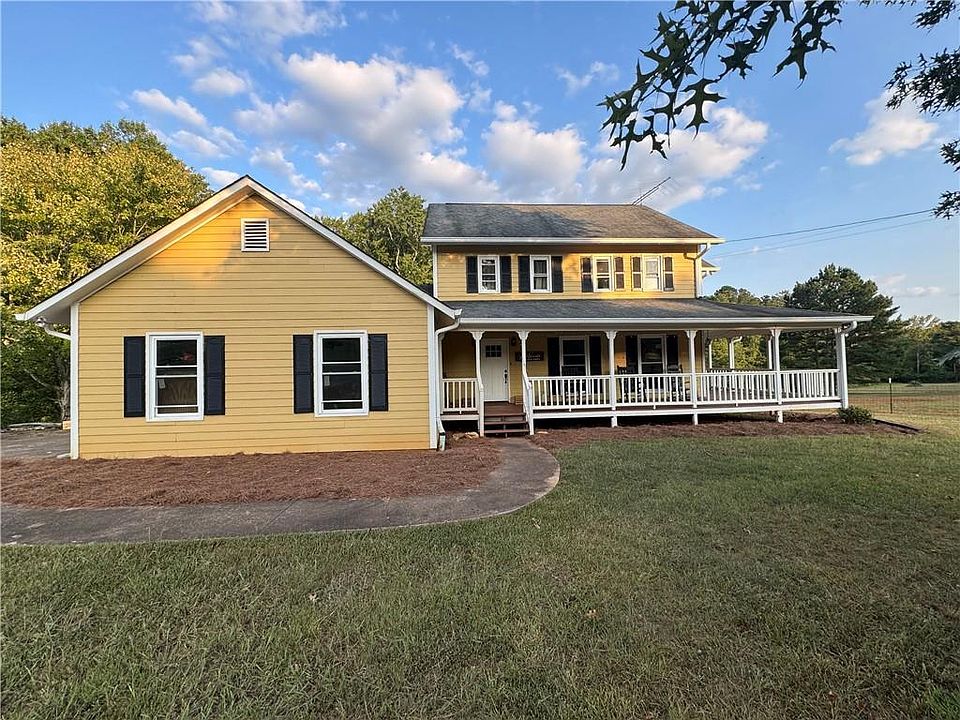 Newly Updated!!! New paint inside, kitchen and bathrooms all updated with granite counter tops and cabinets refinished. Tile flooring in upstairs bathrooms, with tiled showers. All windows and doors replaced in 2020, HVAC only 2 1/2 years old and a finished attic space used as a fourth bedroom or bonus room. All appliances are only 5 years old. Property sits on 4 acres with a wrap around porch and the view is absolutely beautiful when you top the hill and see it open up. A must see for yourself!
