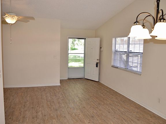 Light and bright starter home, Winter retirement home or investment property! Beautiful, updated kitchen. Carefree vinyl flooring throughout. Close to everything...walk to Sugar Mill Elementary and Silver Sands Middle schools (Port Orange School District!) Walk to the Community pool! 27' x 7' screened porch is amazing as it extends across the entire back of the home, with slider access from a bedroom and the dining room. Fenced yard and security system round out the features of this great home. New roof and AC in 2014...Termite Bond is in effect and transferrable.Must see - this home will not last!