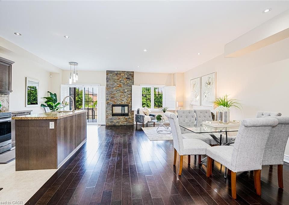 Welcome to your new home, a beautifully upgraded executive Freehold Townhouse in Family-Friendly East Credit, Mississauga, minutes away from Heartland, Highway 403 & bustling intersection of Mavis & Eglinton Ave! This spacious & beautifully upgraded freehold townhouse is a perfect choice for first-time home buyers & growing families. This 1900+ sq. ft. home offers open concept main floor, 3 large bedrooms, a den (ideal as a 4th bedroom or home office), plus a fully finished basement! Step inside to a welcoming front foyer with a designer door, double closets, & extra storage space. The main floor features 9-foot ceilings, pot lights, large windows, patio door, & modern 5.5-inch baseboards giving the entire space a fresh, airy feel with its custom stone accent wall a built-in electric fireplace. The open-concept kitchen is perfect for family meals&entertaining, with custom cabinets, tile backsplash, double sink with an island, &stainless-steel appliance. Enjoy meals in the bright dining area, which opens to a low-maintenance composite deck (2021) with glass railing a great space for summer barbecues or kids to play. Upstairs, you'll find three spacious bedrooms plus a versatile fourth room. The primary suite is a true retreat with custom wardrobes, California shutters, pot lights, & a private covered balcony for morning coffee or quiet evenings. A spa-like 4-piece ensuite completes the space. All bedrooms include custom-made closets. The fully finished basement is ideal for a playroom, teen space, guest area, or even a home gym. It includes custom storage cabinets, a laundry area, & a full 3-piece bathroom offering flexibility for your family's needs. Additional highlights include modern stone exterior, new furnace (2025), AC (2019), walking distance to parks, top schools, transit, Rabba & more. above grade sq ft 1900 sq ft Spacious driveway accommodates 2 vehicles, plus 1-car garage total parking for 3.