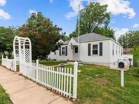 Adorable bungalow cottage with DUAL LIVING QUARTERS in finished walk-up lower level, plus DOUBLE CARPORT. Walkable to Upshot Coffee & St Charles High, just blocks from Historic Main Street. Charming curb appeal with white picket fence, vinyl siding & covered entry. Bright living room with NEW water-resistant luxury vinyl plank flooring. Bright eat-in kitchen with wood cabinets, NEW GRANITE counters, tile backsplash, stainless appliances, ceramic tile flooring. Primary suite with updated tiled step-in shower, newer vanity. Secondary bedrooms share hall bath with step-in shower. Convenient laundry hookups on both levels. Downstairs living room with walk-up to backyard. 2nd NEW kitchen with wood cabinets, GRANITE counters, stainless appliances. Bedroom with egress, office/sleeping room & full bath with tiled shower. Double driveway with carport, outbuilding/shed & fenced backyard. New exterior doors. Both sets of refrigerator/washer/dryer stay. Fantastic location near Highways 94/70/370.