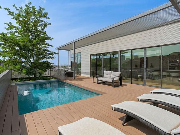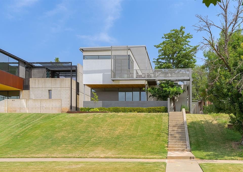 Anchored high above the Oklahoma City skyline among SoSA's modern architectural masterpieces! A brilliant blend of luxury and aesthetics minutes away from the best local shops, restaurants, and vibrant nightlife in Midtown and Downtown OKC. Custom designed and masterfully built with every detail thoughtfully considered including materials, views and natural light. Intriguing curb appeal leads you to the covered entry where you'll be greeted with a sleek living room made for entertaining. Floating stairs lead up to the second living, kitchen and primary suite with unobstructed views of your private pool and the downtown district skyline. Custom cabinets and stunning quartz counters throughout really shine in the chefs kitchen. An impressive center island, floor to ceiling windows and white oak wood floors make this dream living/kitchen combination the center of attention. Step out on to the expansive deck and enjoy intimate evenings or summer barbecues by your private gunite pool. Retreat to the primary suite featuring a restorative spa-like experience with soaking tub and glass shower. Additional features include museum finished texture on walls, an insulated garage with heat/air and dual utility hook-ups - one on each floor. Schedule a private tour today!