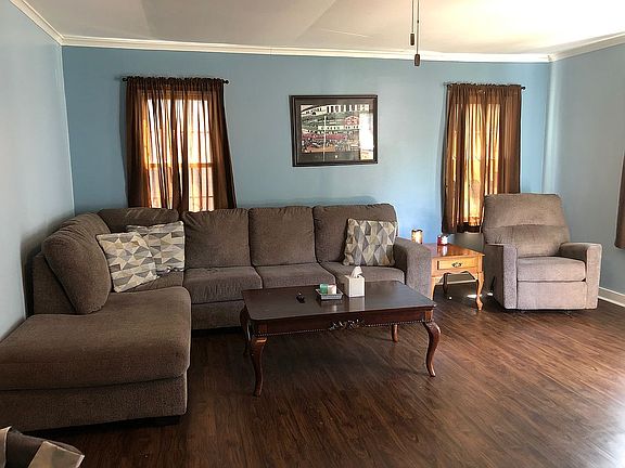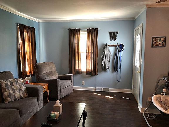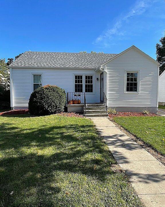 This cute 2 bedroom 1 full bathroom ranch style home makes a perfect starter home! 2 car detached garage with door to fully fenced backyard. New siding on home in August 2021 and new roof on home AND detached garage August 2021. New kitchen in 2018 with matching stainless steel appliances. Partially finished basement can be used as a rec room. New hardwood flooring in 2020 and new carpet in bedrooms February 2021. Master bedroom is 11.5x10.5 with large mirror sliding closet doors and shelving in closet. Second bedroom is 11.3x10 and has closet with shelving. This home has newer windows, central air unit and furnace within the past 10 years and the furnace comes with a built in humidifier, programmable thermostat (brand new summer 2020) with smart phone capabilities. Large deck on back of house and attic with lots of storage and basement has storage too. Plenty of extra parking space and a lot more little updates such as newer light fixtures throughout home.