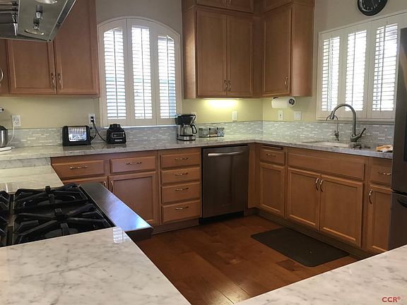 This gorgeous two story home, nestled in Peterson Ranch, once served as the model home for the neighborhood. The cozy living room looks into the recently remodeled kitchen finished with marble counter tops and a beautiful glass mosaic back splash ideal for entertaining. Also, downstairs you will find impressive hardwood flooring and shutters through out! The second story offers four bedrooms, one of which is a sizable master suite with dual walk in closets and a view. Enjoy spending time with friends and family in this low maintenance back yard, which has recently been renovated with synthetic grass. The covered patio is perfect for all times of the day as it offers built in lighting and a sun shade. Come take a look at all this home has to offer!