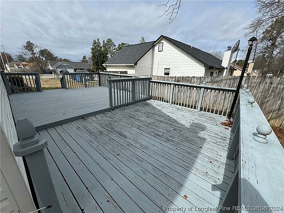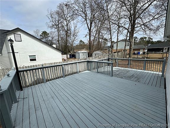 Back on the market at no fault of the seller. Check out this 3 bedroom 2 bath home in Middle Creek. Minutes away from I-295, Fort Liberty, and several shopping centers. Exterior of the home features large two-tier deck on the side perfect for grilling and entertaining, patio in the backyard and 2 outside storage buildings. Roof replaced Dec 2023! Interior features a foyer, kitchen with pantry, eat-in area, and large countertop area for prepping and counter seating, sizeable living/dining combo. Spacious primary bedroom with primary bathroom with walk-in closet. In the last 5 years the owner has replaced the water heater 2018, kitchen countertops and backsplash 2020, tile floors in foyer, living room, and hallway 2020, hall bathroom vanity 2022, and refrigerator 2022.