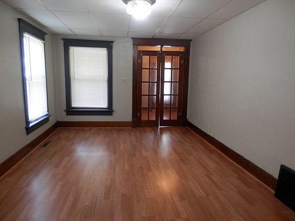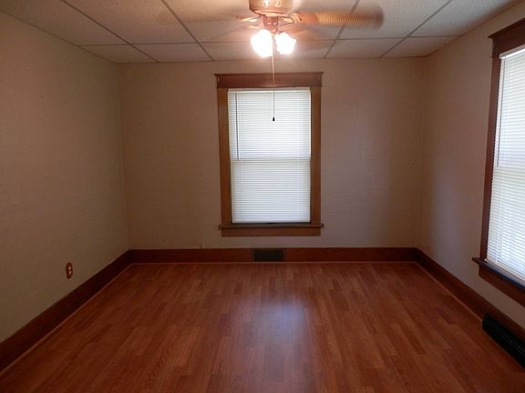This 1900 house has been recently updated but retains its old world charm. A partial wrap-around porch provides seating to the south and the east. Visitors then enter a small foyer with stairway and French doors to the spacious living room. There are 2 additional rooms for a designated dining room and a play/family room. The kitchen has ample space for an eating area or island. The full bathroom on this level has a jetted tub. A back porch has been converted into a laundry room. The upstairs features 3 bedrooms and 1 full bathroom with a walk-in shower. Both levels have all new laminate flooring, but the wide floor molding, egg and dart embellished trim boards and black cast iron registers have been kept. There is a partial unfinished basement that houses the mechanics. A detached one car garage has alley access. The shady back yard is fenced for child safety or for pets.