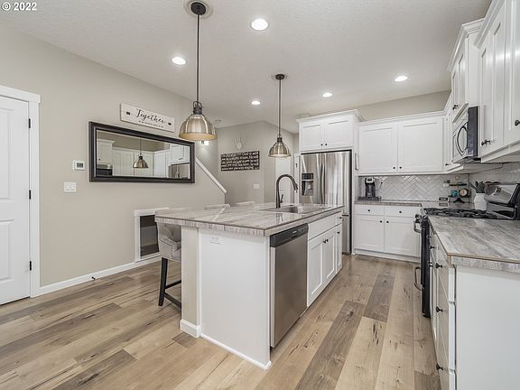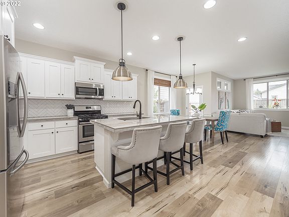 Absolutely Stunning Inside & Out! 4 bed/2.5ba home w/ Primary Suite on the Main. Fantastic light & bright floorplan with modern finishes throughout, gas fireplace in living room, gorgeous laminates on main, beautiful white kitchen cabinetry, full herring bone backsplash, large island, SS appliances, gas range & pantry. 3 Beds upstairs all w/ walk in closets. Large fenced flat backyard with patio perfect for entertaining, garden, & play. Community Park. No HOA! Open Sat 12pm-2pm & Sun 2-4pm