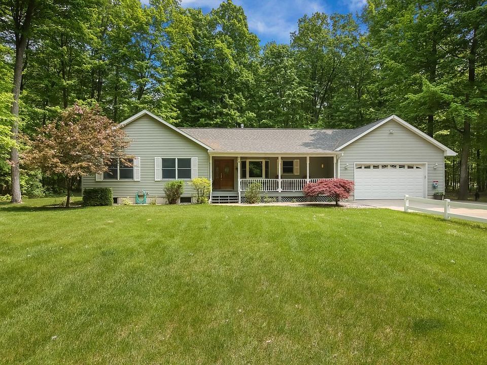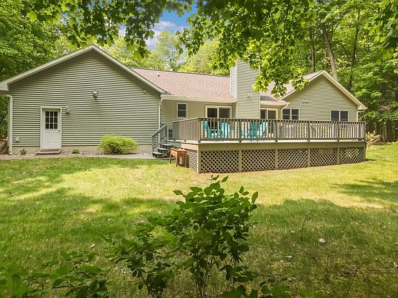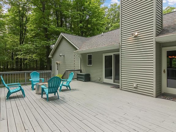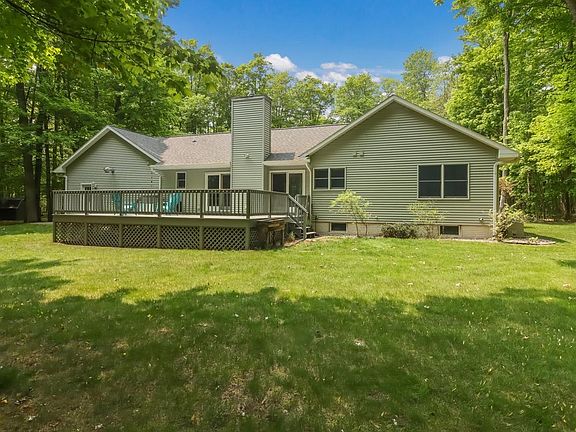 Relax at this meticulously maintained three-bedroom, two-and-one-half-bath ranch home nestled on five private wooded acres in beautiful Benzie County. You will appreciate the wooded acreage that surrounds the home. The views through the windows are lovely when relaxing in your living room by the gas fireplace. Spend hours playing, gardening, exploring, and nature-watching or relaxing on your spacious deck overlooking your backyard. A new roof in 2022 and new black stainless steel kitchen appliances in 2021 are welcomed additions to this home. The 1300 sq. ft. unfinished lower level features 10-foot ceilings ready for you to expand your living area. The 24x30 garage is heated and has plenty of room for your workshop. There is even a 12x14 garden shed for more storage. You are conveniently located near the Betsie Valley Trail, Lake Michigan beaches, Sleeping Bear Dunes National Lakeshore, swimming, boating, world-class river fishing, canoeing, kayaking, tubing and much more. Copy and paste this address into your web browser to view the stunning virtual tour and a 3D home tour at this property's website 819smarshallrd.com.