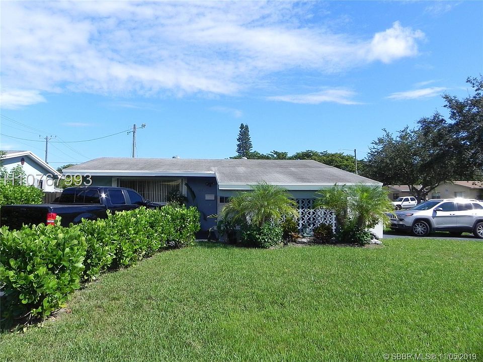 HURRY !PRE-FORCLOSURE! VERY COOL 2 BEDROOM 1 BATHROOM HOUSE ON LARGE CORNER LOT ACROSS FROM PARK, FLA ROOM WITH JACUZZI, SEPERATE LAUNDRY ROOM, SCREENED PATIO, 2 TRAVERTINE PATIOS, MODERN LOOK KITCHEN WITH CORIAN COUNTER TOPS AND BAR, STAINLESS APPLIANCES, BUILT IN CABINATRY AND LOTS OF CLOSETS NOOKS AND CRANNYS. ACCORDIAN HURRICANE SHUTTERS ALL THE WAY AROUND.