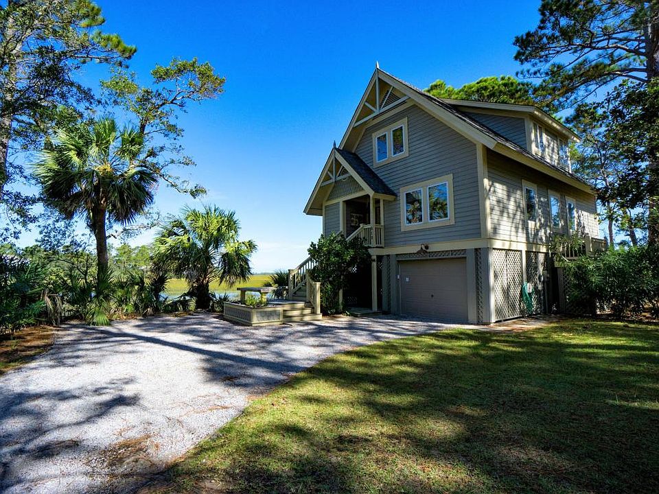 PRIVACY WITH A MARSH VIEW Privacy with a marsh view! Enjoy your evenings from the extended porch looking onto the marsh... soft breezes, wildlife, ever changing marsh colors. Quality construction throughout! Great views from all living areas. Furnished, including golf cart. Sleeps nine - great rental potential!