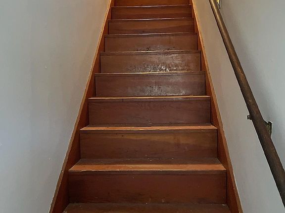 Two large bedrooms upstairs with hardwood floors, and shared bath. Private well, .63acres+/- and fenced area for a small pet. Handicap ramp leading to back door. Partial basement with inside and outside entrance. Has deeded paved driveway. Land is located behind and to the right of the house. Possibly garden spot near the well. A monitor heater is the only heating source. This home has loads of potential but could use a little TLC. Being sold “AS IS”