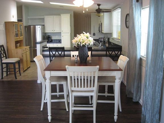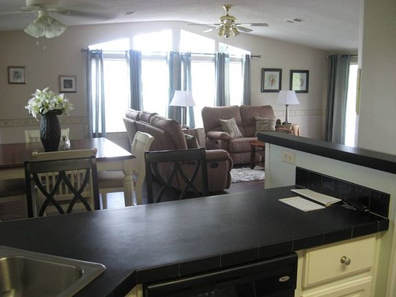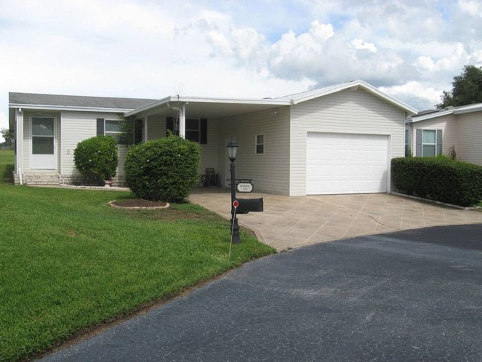You will find this lovely home in beautiful Four Lakes Golf & Country Club, a 55+ gated community with homes on lot leased land. This home features two bedrooms, two baths, dining room, bright open floor plan, tape and texture, and it is fully furnished. The open kitchen has a breakfast bar and plenty of storage and counter space. The laundry room is off of the kitchen (yes washer and dryer are included) and has access to the garage. The master bedroom has a walk-in closet and master bath features his and her sinks and a walk-in shower. The 15' X 10' screened Florida room has a lovely view of the golf course with access to the covered patio. The deco drive leads to the 17' X 16' garage which does include a golf cart. This great home comes turnkey!  So, bring your toothbrush, clothes, and of course your check book. You won't want to miss out on this deal!!