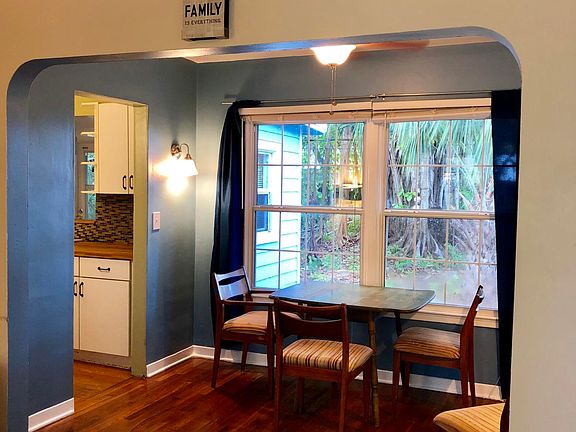 Old florida charm with gorgeous wood floors, high ceilings, archways, newer windows, new tankless water heater, stainless appliances, tile backsplash, butcher block counter in galley kitchen. Bath has new sink, vanity, floor, nice large shower. New low maintenance landscaping. Large backyard. Driveway and large carport. Huge screened in porch. New exterior paint. Move-in ready! Perfect for use as an AirBnB or a first home.
