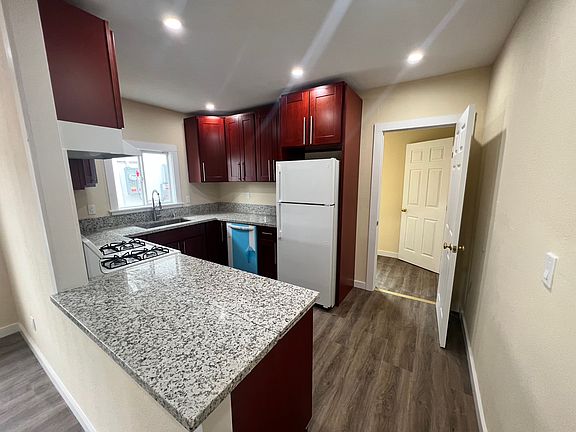 This is a beautiful home that has been completely remodeled from new sheet rock to all new appliances. There's a front porch to relax on and meet neighbors. The house has dual-pane windows. The amenities are incredible. The rent might seem a little high but the list of amenities makes this a bargain. There is solar with battery backup so your PG&E bill will be low. Included in the rent, there is fiber coming to the house so, screaming WiFi with internet access is included. The appliances are all new. There is also a monitored security system, a washer and dryer, front door keyless entry, A/C with a split system, Bluetooth speaker/fan in the bathroom, pest control is included, dishwasher, gas stove, and multiple security cameras, including a doorbell camera. The security system is a Vivint Security product with everything tied together. That means the front panel, or your phone, allows you to control everything and see the cameras. You can even lock and unlock the front door from your phone or change the codes. There are sensors on the windows, motion sensors in the house for when you set the alarm and leave the house. This is all private with passwords you will set as a new tenant. It's everything you want in a house!
