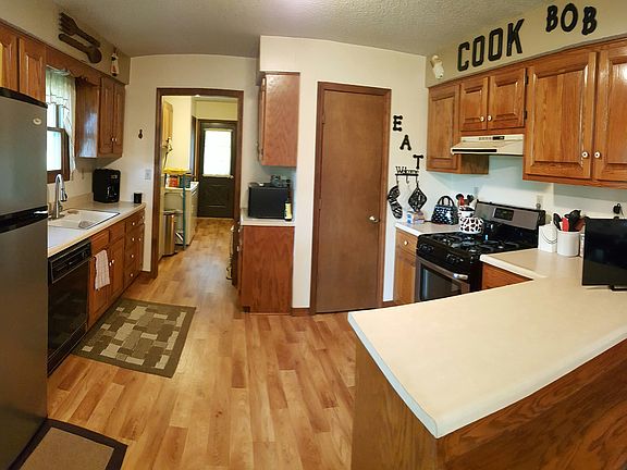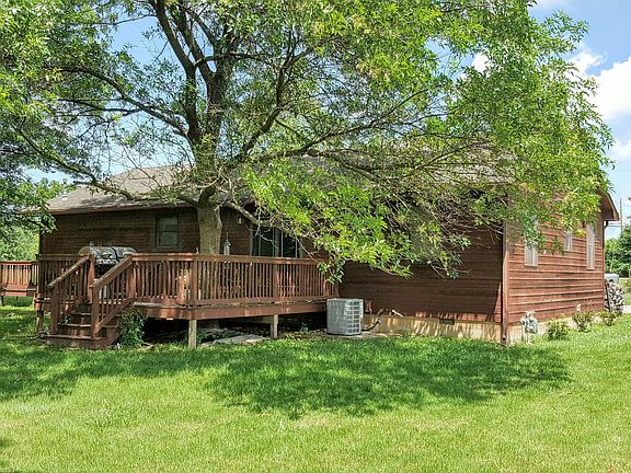 Rustic home just 1/2 mile west of town on 9.2 acres part of a pit at rear of land. Large deck in back, large covered front porch, New roof, new kitchen appliances and new flooring. Nice quiet area.
