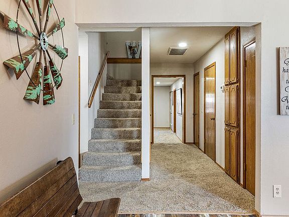 Listed by Spanky Davis & Andi Scifres, bridgesrealtygroup.com This spacious 1.5 story, 4 bed 3 bath home is family friendly and offers updates through out. The large working kitchen offers great storage, stainless appliances, gas range, microwave, dishwasher, garbage disposal, refrigerator, a breakfast bar, solid countertops, and opens to a roomy dinning space with loads of natural light. Also on the first floor you will find a great family room with fireplace, primary bedroom, 4th bedroom, kitchen, office space, utility area and access to the basement area. Upstairs bedrooms 2 & 3 each with it's own 3/4 bathroom, and extra storage. Backyard provides a private setting with a pergola and a grilling area w/ incased TV. The detached 2 car garage has room for a work bench, and the back of the garage is climate controlled storage or recreation space. The property includes an extra full size lot to the east of the garage. This family home is located on a corner lot with easy access to Ninth St. Call Spanky or Andi to schedule your viewing of the great property.