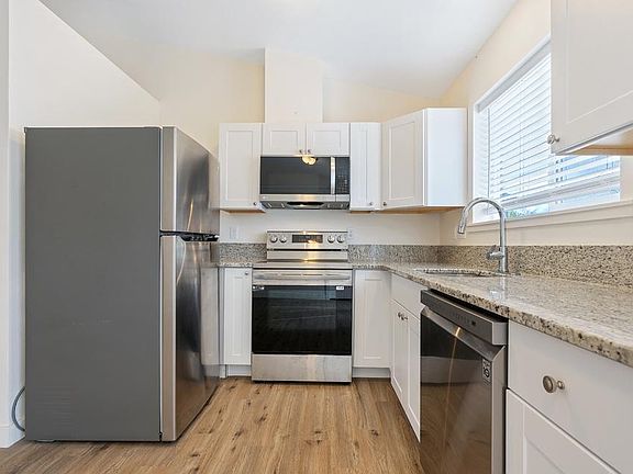 Experience modern living in this less-than-one-year-old single-level duplex for rent! This contemporary home boasts 3 bedrooms, 2 bathrooms, and a seamless open floor plan. The kitchen features granite countertops, stainless steel appliances, and ample storage. Enjoy the convenience of a master bedroom with master bathroom and large closet. Two additional bedrooms offer flexibility for guests or a home office. Relax in peace on a quiet street surrounded by large mature trees. Other highlights include a laundry room, attached one car garage, and energy-efficient features throughout. Don't miss this opportunity to live in a brand new home in a desirable location! Renter is responsible for all utilities. No smoking, no pets. Attached 1 car garage with additional off street parking available in front of the unit.