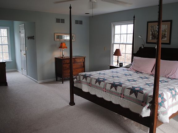 Charming cedar sided, salt box colonial situated on over 8 bucolic acres in Haycock Twp. Custom built & designed by Kichline Custom Homes. A flag lot winds your way to a pretty spot with lovely views, both wooded and open. A 2-car detached garage with storage above plus huge unfinished basement with 9' ceilings and walkout could be finished if you really need the space! Country kitchen with center island-plenty of Hickory cabinets and counter space to cook up a storm! Breakfast area boasts a tall wood burning fireplace with dental molding on mantel, doors leading to deck with simply lovely views! Brazilian cherry hardwood flooring in living room, dining room and breakfast area! Beautiful neutral tile flooring in kitchen. Rear yard partially fenced with doggie door to yard. New carpet in all the bedrooms! Fireplace in living/dining area plus master bedroom. Master bath has shower and jacuzzi. 20 min. to Doylestown.Easy access to Lake Towhee and Nockamixon!Potential subdivision!Seller will apply for tax appeal!