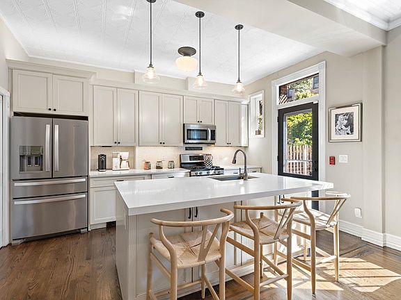 Charming 3-Bed, 2-Bath Home with Manicured Backyard in Prime Hoboken Location Welcome to your dream home in the heart of Hoboken, New Jersey! This meticulously maintained 3-bedroom, 2-bathroom residence offers a perfect blend of classic charm and modern convenience, featuring a wealth of desirable amenities and an unbeatable location. As you step into this parlor-level unit with over 1200 SQFT, you'll be greeted by the warm glow of natural light streaming through an abundance of windows, illuminating the gleaming hardwood floors. High ceilings and crown molding add an elegant touch to the spacious living spaces, making this home truly inviting.The living room boasts a decorative fireplace, creating a cozy and welcoming atmosphere. The chef's kitchen is a culinary delight, featuring shaker cabinets, stainless steel appliances, an expansive island with quartz countertops, and recessed lighting. Cooking and entertaining will be a joy in this well-appointed kitchen. The primary bedroom offers a peaceful retreat with a walk-in closet and an ensuite bathroom, providing a spa-like experience with modern fixtures and finishes. Stained glass windows & another decorative fireplace further enhance the character of this unique space.. Two additional bedrooms are perfect for guests, a home office, or a growing family. One of the standout features of this home is the huge, manicured backyard with a stunning waterfall and deck, where you can enjoy outdoor gatherings, barbecues, or simply bask in the tranquility of your private oasis. Additional amenities include central air conditioning and new windows for year-round comfort. Location is paramount, and this property boasts the best. Situated in one of Hoboken's most coveted neighborhoods, you'll find yourself just steps away from the city's finest restaurants, shops, and entertainment options. Commuting to New York City is a breeze with easy access to buses, the PATH train, and the ferry. Don't miss this opportunity to own a piece of Hoboken history with all the modern comforts you desire. Schedule your private tour today and experience the charm and convenience of this exceptional home for yourself.