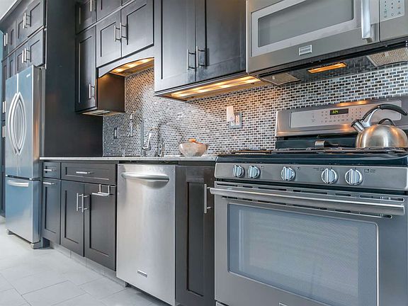 Welcome to your 3 bed/2 bath beautifully upgraded home in the heart of Hoboken! Custom designed full gut renovation of kitchen and both bathrooms. Italian quartz counter tops, water filtration system in sink & fridge, solid wood cabinetry w/ 2 floor to ceiling pantries, abundant counter space plus view of Empire State Building from your kitchen! Both baths offer stone counter tops. BainUltra tub with chromotherapy & air jets in family bath. Master Suite includes gas fireplace, eastern exposures, custom closets. En-suite bathroom offers a glass enclosed double shower. Sunset views from your living room complete with a gas fireplace. Dining room comfortably seats 8 plus furnishings. Ceiling fans, updated lighting fixtures, solid wood interior doors, refinished wood floors, exposed brick, well-appointed closets throughout, including a large, secure, basement storage unit.