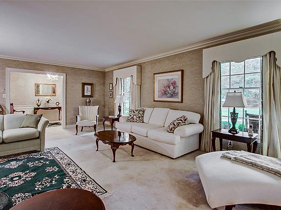 Beautifully maintained brick home on 3+ acres in wonderful cul-de-sac location! Spacious home offers one level living! Huge living room with fireplace & gas logs, opening up to the formal dining room. Den that is perfect for relaxing has fireplace with gas logs, exposed beams & built-in shelving. Nice kitchen with hardwoods, eat-at bar, built-in desk, all appliances remain & cozy breakfast area. Great owner's suite has closet with built-in dresser & bath with ceramic floor & shower. Three additional bedrooms & 2 full baths offer plenty of room for your family! Laundry room with cabinet storage, guest bath & bonus room. Huge unfinished basement offers plenty of storage space. Attached double garage & paved drive. Fabulous outside features include rocking chair front porch, great screened porch and nicely landscaped & manicured lawn! Fantastic property in desired location!