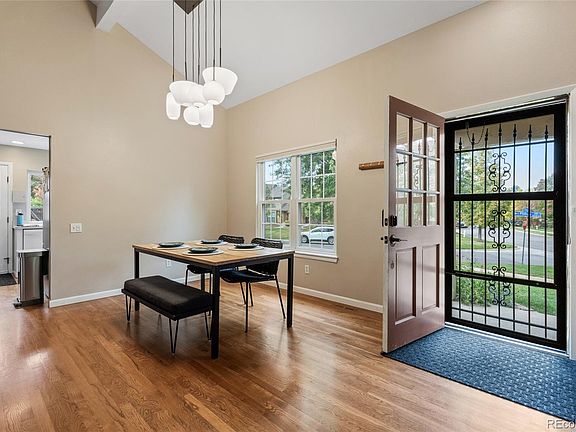 - Description: Vaulted & Open With Gleaming Hardwoods & New Black Chandelier