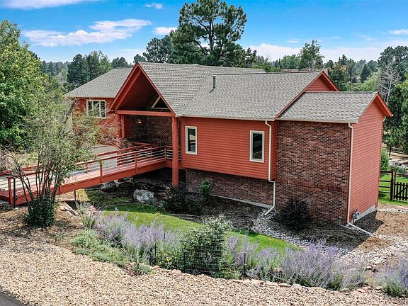 Beautiful home in The Pinery with plenty of Colorado charm that backs to open space for back yard privacy. Open main level has stunning vaulted ceilings with decorative beams & brick accents throughout, gorgeous stained doors & trim to match, large glass panels & view windows for lots of natural lighting, see through fireplace between the kitchen & living room, and coffered ceilings in the large main floor master bedroom. Walkout basement has a large family room, bar w/rough-in, lots of storage, and room to build additional bedrooms/bathroom. Stainless steel appliances, slab granite counter tops, cherry cabinets, real hardwood floors, built-in cabinets, ceiling fans, central A/C, oversized garage. Large composite deck out back, mature professional landscaping, fully fenced yard, remote control sun shade, & slate patio below. This house is immaculate, well maintained, and shows the pride of ownership.