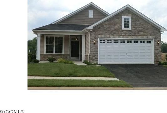 The WENTWORTH features 2 spacious bedrooms, two full baths, 2 car garage with walk up storage above. Interior has open floor plan, gourmet kitchen with Double Ovens and smooth cook top, Corian counters, pantry and stainless appliances in kitchen. Wood floors in foyer and halls, kitchen dining room and breakfast room. Family room is generous with fireplace. Huge Master BR with luxury bath: (tile shower and floor). So much more. Fantastic new community is 30 minutes from Richmond or Williamsburg. Access to Rees Jones golf course. This and 4 other homes READY NOW!!!