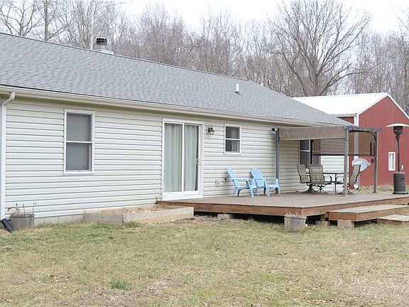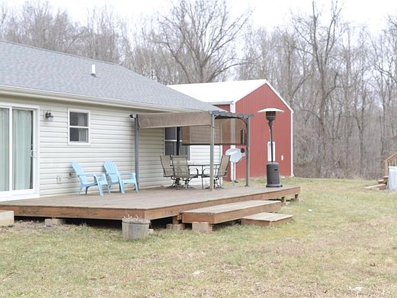 Take a look at this beautiful ranch home built in 2018. Spacious 3bd, 2 full bath, on 5.5 acres with large pole barn and a mini barn that's currently used as a she shed! The open concept of the great room, kitchen and dining make it a great space for family and friends to gather. The fireplace wall makes a statement in this home with custom faux shiplap! Granite counter tops in the kitchen are another nice upgrade. The kitchen has a huge stainless farmhouse sink. Fridge, dishwasher, microwave, oven and washer/dryer all stay. The large back deck is the perfect spot for summer grilling and relaxing under the pergola! Nature lovers can watch the wildlife on the property! This is truly a one of a kind property!