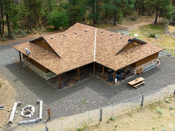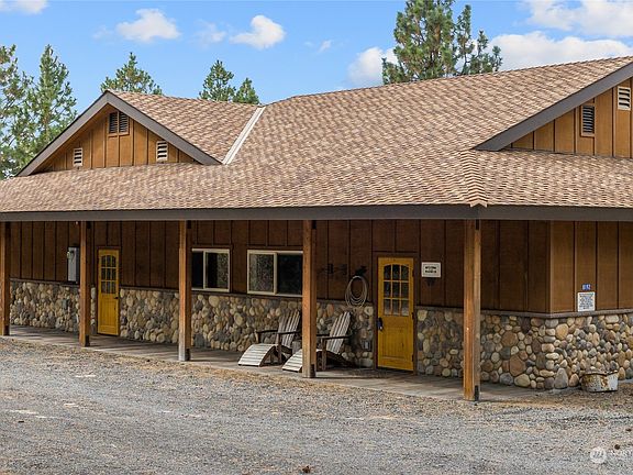 Commercial style bunkhouse right out of Yellowstone, 50 ac accessing DNR land for exploring, hiking, biking, hunting & serenity. Cement floors; radiant heat, a huge kitchen, comm range & hood, 5 sinks, counters/cabinets galore plus an eating bar. Great rm with banks of windows & French doors, 1 bdrm, a lrg laundry & a mechanical rm. You'll love the 2 bathrooms that have a total of 5 toilets, 1 urinal, 4 showers & 4 sinks! Built in audio, fire sprinkler, A/C & commercial grade septic! 740 sq ft of stamped concrete, covered patio, 2 RV hook ups. 1000 gal buried propane, 10k water storage, riding arena, fenced pastures, horse shelter. Gated neighborhood, comm trails & barn+ access to public lands for miles of riding! Can't build for the price!