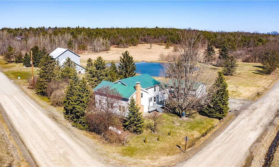 Beautiful and charming country home on 15+ acres. Partly wooded & some tillable. Lg gorgeous old style 3 story barn in great condition w/metal roof, work shop & indoor basketball court! Take a dip in the pond complete with waterfront cabin w/ new metal roof. New detached 2 car garage. Kitchen has beautiful pine tongue & groove ceiling. Dining room has beautiful knotty pine floors. Large living room has textured walls & bench seat. You can't miss the gorgeous stone fireplace with coal insert. First floor also has 2 extra rooms perfect for a den, study or quest room. On 2nd floor you'll find 3 large bedrooms with good sized closets and a full bath. Vinyl windows. Metal roof. 200 amp electric. Peaceful property with the beauty of nature just outside your door. Come see for yourself!