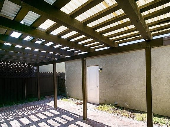 This Quaint & Newly Painted home Features Corian Counter-Tops in Kitchen & Bathrooms, Newer Flooring in all Bathrooms, Newer Water-heater, Ceiling Fans in Dining Room, Living Room & Master Bedroom & a Half Bathroom Downstairs for Guests. Upstairs is a Large & Spacious Master Bedroom with Custom Walk-In Closet, Ceiling Fan & Connecting Full Bathroom with Tub/Shower Combo, Two Nice Size Guest Bedrooms both with Newer Mirrored Closet Doors & a Full Guest Bathroom with Tub/Shower Combo located in the Hallway. Both the Living Room & Dining Room have Plantation Shutters with Dining Room opening to a Private Brick-Accented Covered Patio that connects to a 2-Car Garage with Laundry Hookups. This Tucked Away quiet Community includes a swimming pool, spa and clubhouse. Close to Shopping, Freeway, Schools and the Beach!