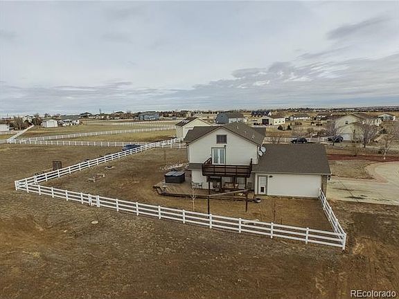 Custom Home on 2.5 acres with Amazing Mountain Views. Country living and horse property, just minutes to the city. Kitchen has Corian counter tops, tile back-splash, gas stove and double ovens. Relax or Entertain in the Large Living Room with built - in book shelves, gas fire place and custom Mahogany inlays in hardwood floor. The main floor contains a very conveniently placed 4th bedroom with it's own bath. The second level holds the Master Suite, 2 additional beds connected with a Jack and Jill Bath along with a loft area and office nook! Enjoy Sunsets from the Master Bedrooms Spacious Balcony with Expansive Views of the Front Range!