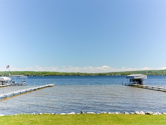 South Lake Leelanau waterfront! Situated on the south-west shore with 80' of private frontage, lake life at this property is absolutely dreamy. Surrounded by beautiful gardens w/ almost 2 acres of manicured lawn and ample privacy, the meticulously maintained 3118 sq/ft main house w/2 car attached garage plus a 750 sq/ft guest house above a charming barn style outbuilding create the perfect set-up for family & friends to spend time on this premium, locals favorite lake ideal for boating, fishing, kayaking & swimming. The interior of the main house boasts an entire upper level dedicated to the master bedroom, double staircases, gas F/P on main & lower levels, towering great room w/ cathedral ceiling & a bank of east facing windows, formal dining room, and lower level walk-out family area complete w/ wet bar. Nice big parcel w/ lots of options for gardens, micro orchard, or additional outbuilding. Great location just a quick drive to Traverse City & even closer to villages of Cedar or Lake Leelanau. Perfect year-round home or base-camp to explore Leelanau County's Wine, Golf & Outdoor Country! Click on virtual tour link for an incredibly realistic view of the interior!